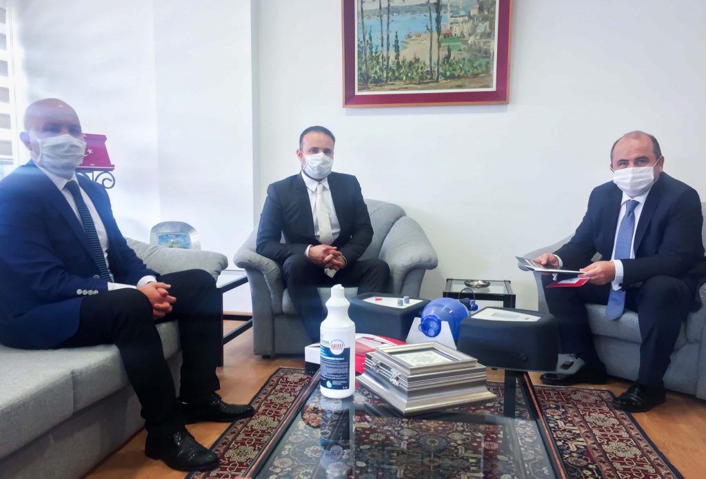 Yakın Doğu Üniversitesi Mütevelli Heyeti Başkanı Prof. Dr. İrfan Suat Günsel, Rektör Yardımcısı Prof. Dr. Tamer Şanlıdağ ve Yakın Doğu Üniversitesi Robotik Laboratvuarı Sorumlusu Ersin Aytaç’tan oluşan heyet Türkiye Cumhuriyeti Lefkoşa Büyükelçisi Ali Murat Başçeri’yi makamında ziyaret ederek, Türkiye Cumhuriyeti Sağlık Bakanlığı’na verilmek üzere teslim edilen solunum cihazını tanıttı. Ziyarette ayrıca, COVID-19 sürecinde Yakın Doğu Üniversitesi tarafından yürütülen akademik çalışmalar ve projeler hakkında Büyükelçi Başçeri’ye bilgiler aktarıldı.